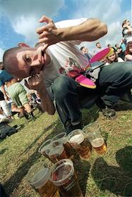 Ипподром города Раменское, рок-фестиваль "Нашествие 2000": один из зрителей фестиваля демонстрирует…