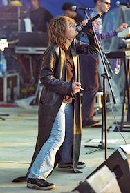 Певица Земфира во время выступления на рок-фестивале "Нашествие 2000". Фестиваль прошел на ипподроме…