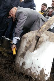 Мэр Москвы Юрий Лужков копает землю в Приречном парке в долине реки Сетунь во время городского…