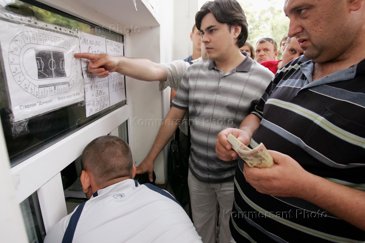 Продажа билетов на футбольные матчи в кассах стадиона "Динамо" им. Валерия Лобановского.
