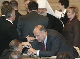 Мэр Москвы Юрий Лужков (слева) и губернатор Краснодарского края Александр Ткачев в фойе Мраморного…