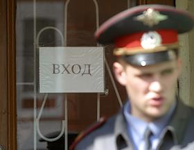Милиционер у входа в здание Мещанского суда, где проходили слушания по уголовному делу Михаила…