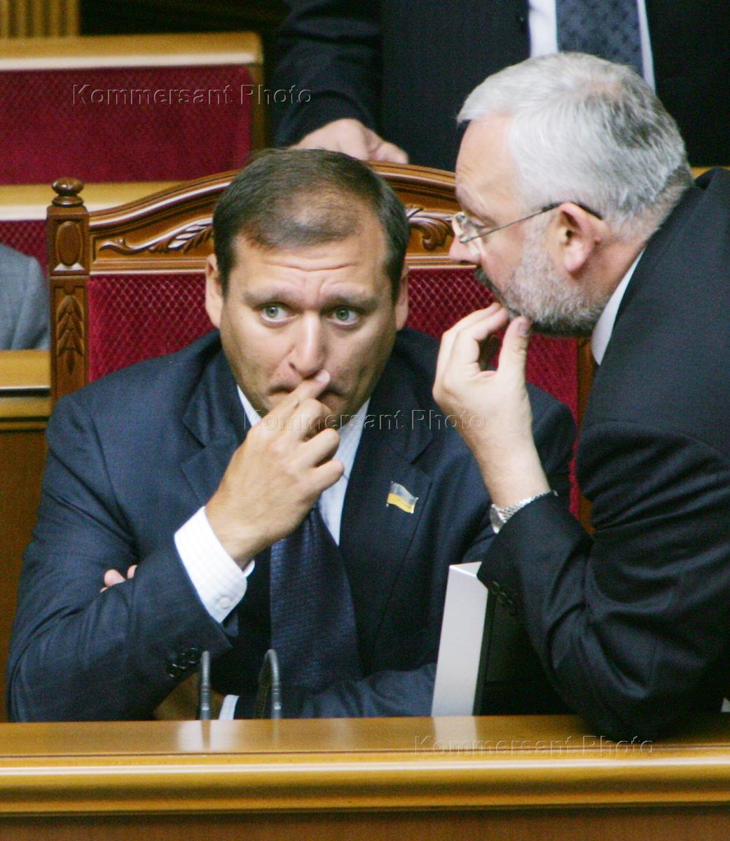 Народные депутаты Украины Михаил Добкин (слева) и Игорь Шурма во время заседания Верховной Рады…