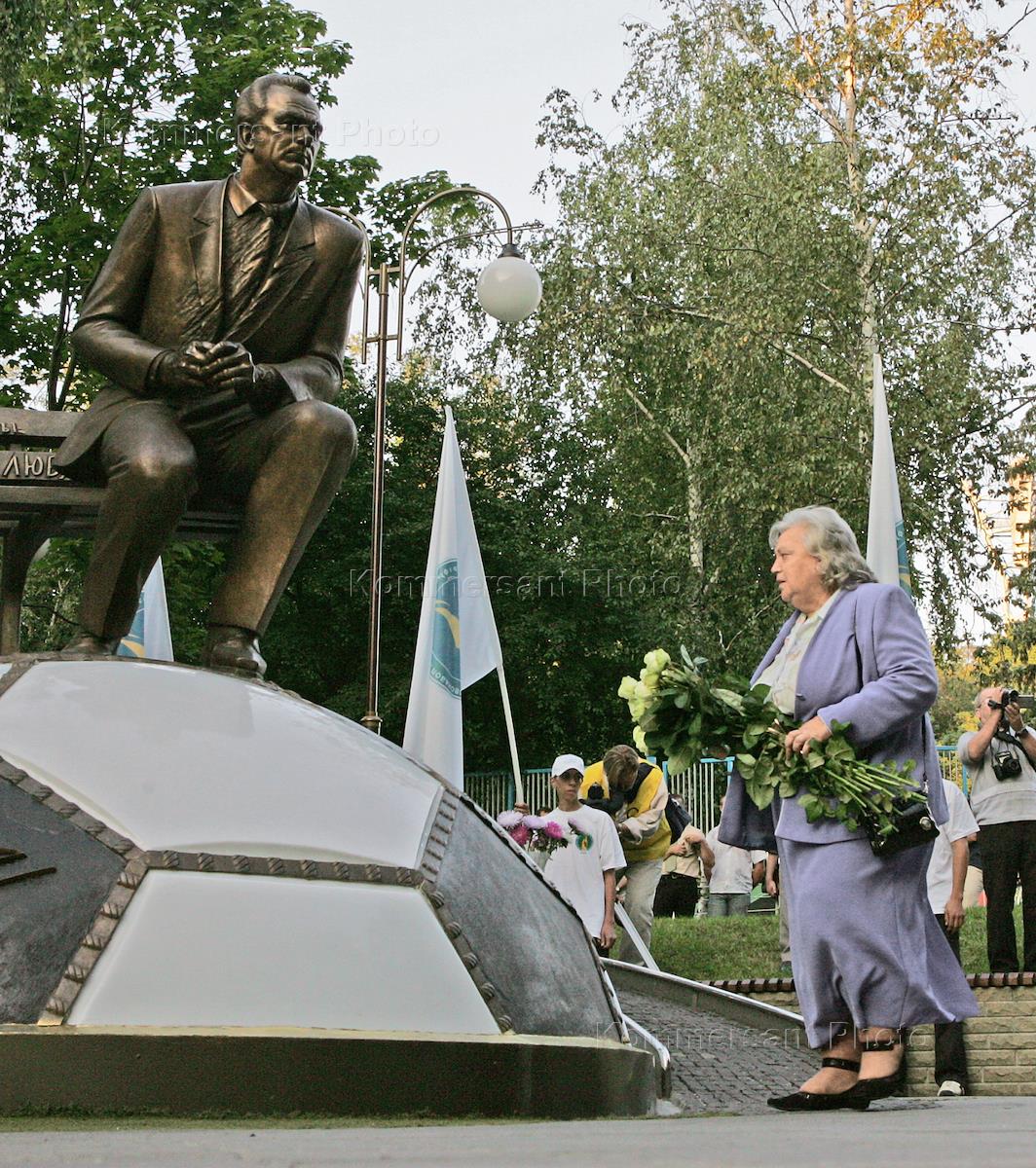 Жена Валерия Лобановского Аделаида Лобановская возлагает цветы к памятнику мужа на стадионе «Динамо»…
