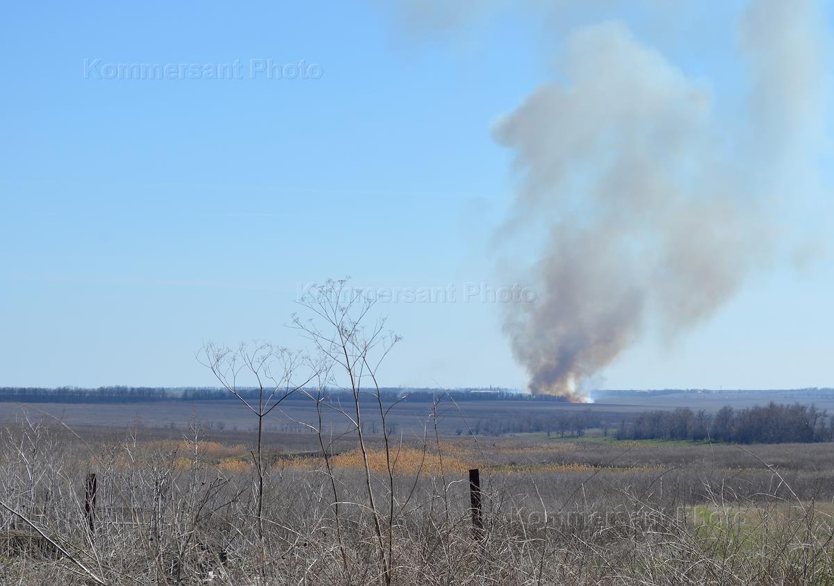 Танк вооруженных сил Украины (ВСУ) во время обстрела территории у населенного пункта Коминтерново.