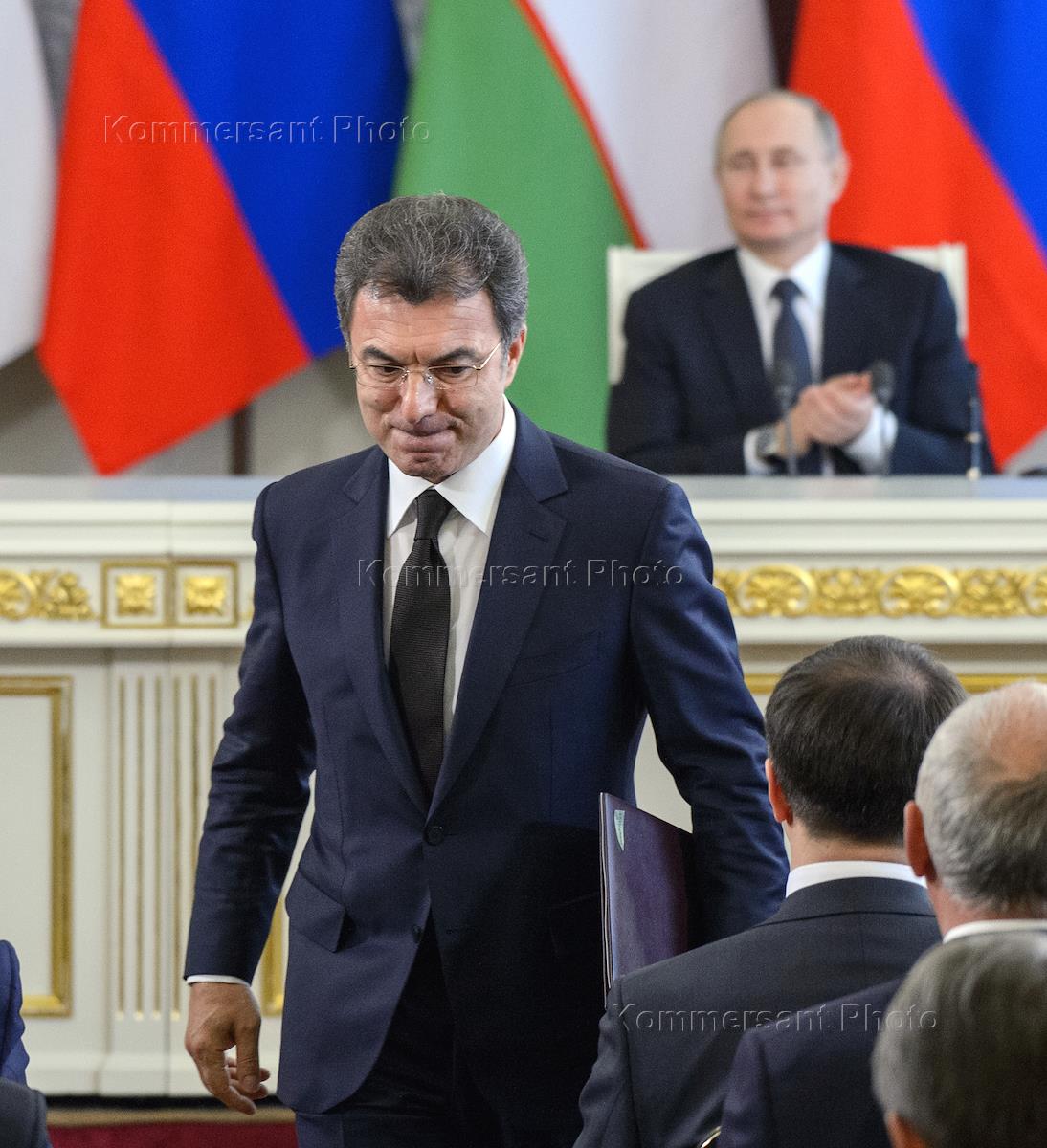 Встреча президента России Владимира Путина с президентом Узбекистана Шавкатом Мирзиёевым. Слева…
