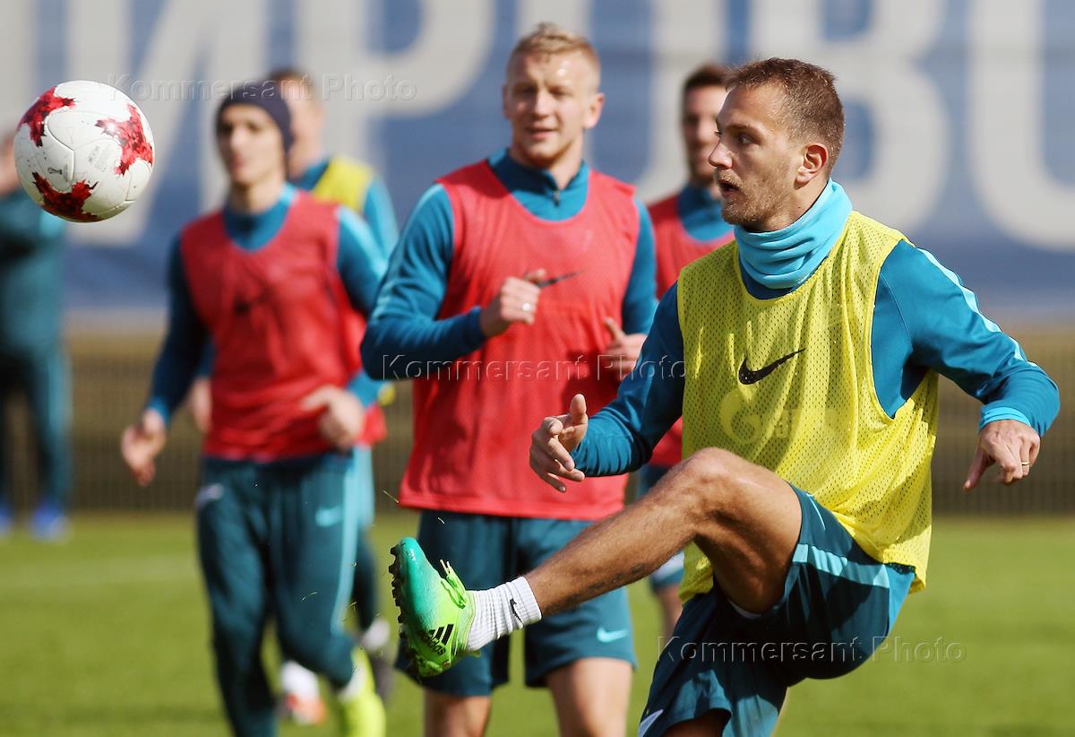 Тренировка ФК Зенит (Санкт-Петербург) перед матчем 22 тура чемпионата России по футболу 2016-2017 против ФК Анжи (Махачкала).