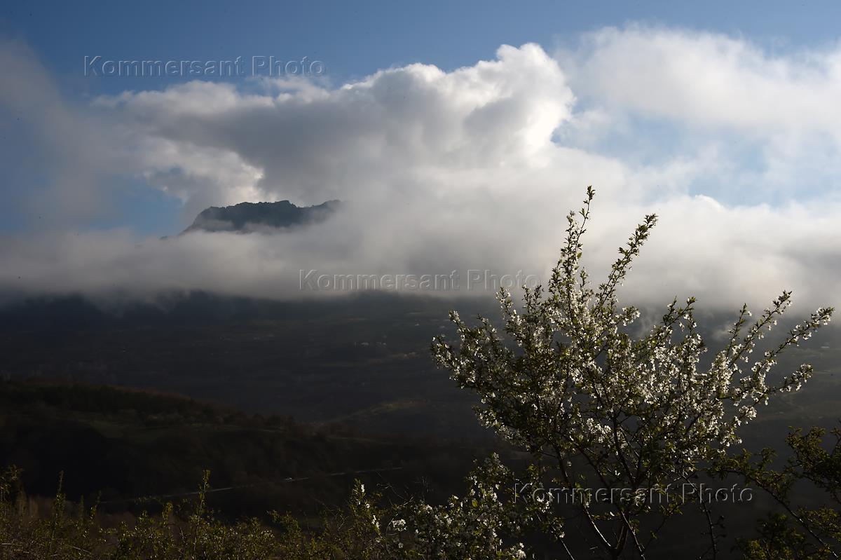 Виды Крыма. Гора Демерджи в облаках.