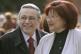 Артисты эстрады Евгений Петросян и Елена Степаненко перед началом концерта Дмитрия Хворостовского на…