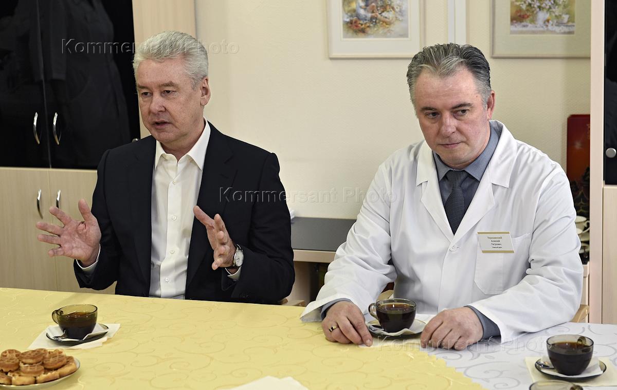 Мэр Москвы Сергей Собянин (справа) во время посещения городской поликлиники № 175.