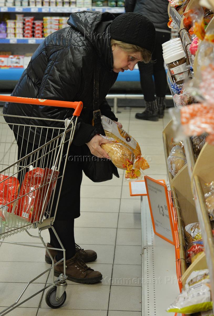 Жанровые фотографии. Работа магазина розничной сети "Дикси". Покупатели в торговом зале магазина.