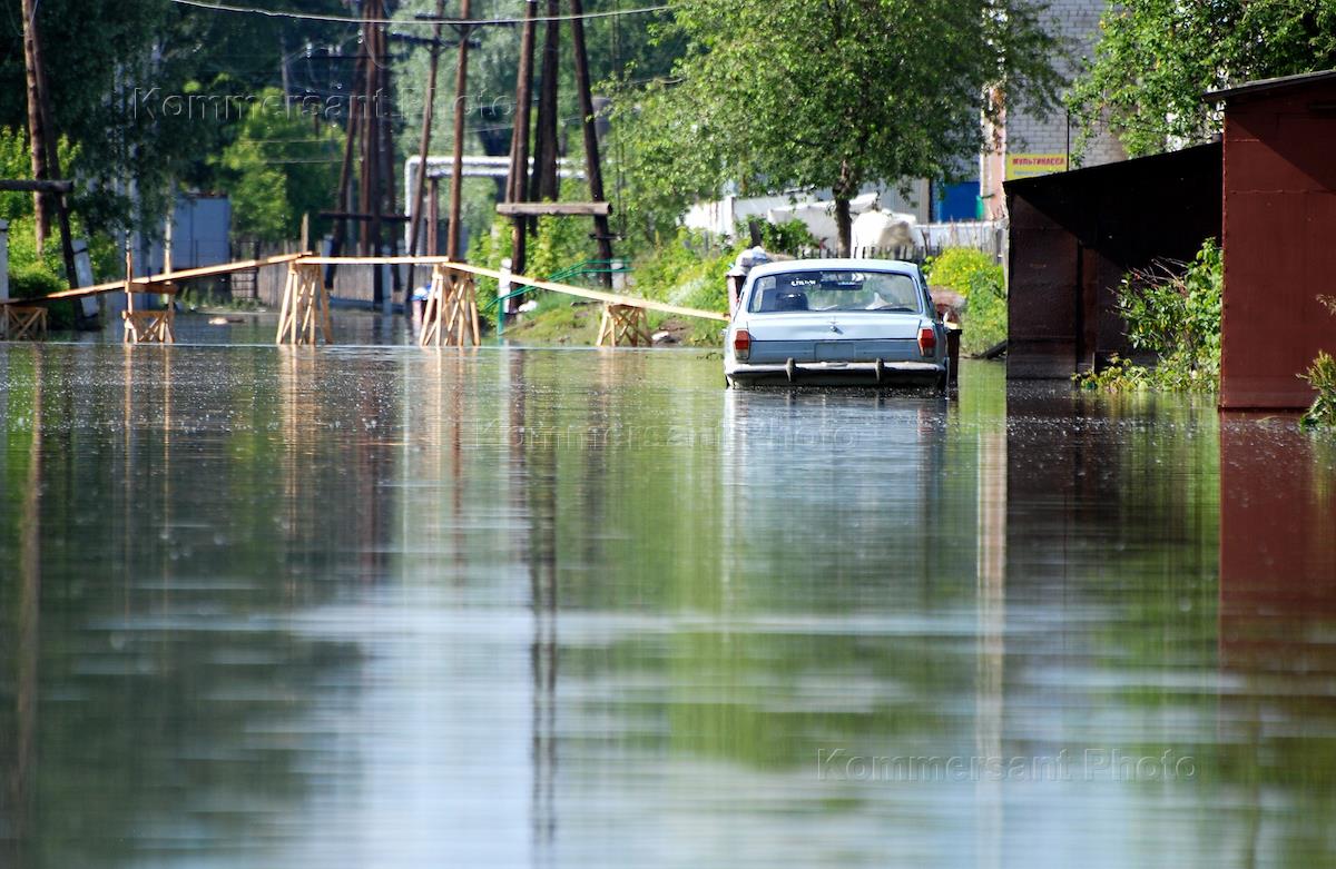 Паводок на реке Обь. Затопление пригорода Барнаула - микрорайона Затон - во время паводка.