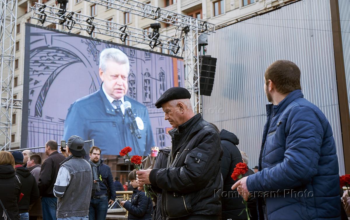 Акция в память о жертвах теракта в метро Санкт-Петербурга "Питер, мы с тобой" прошла на Манежной площади.