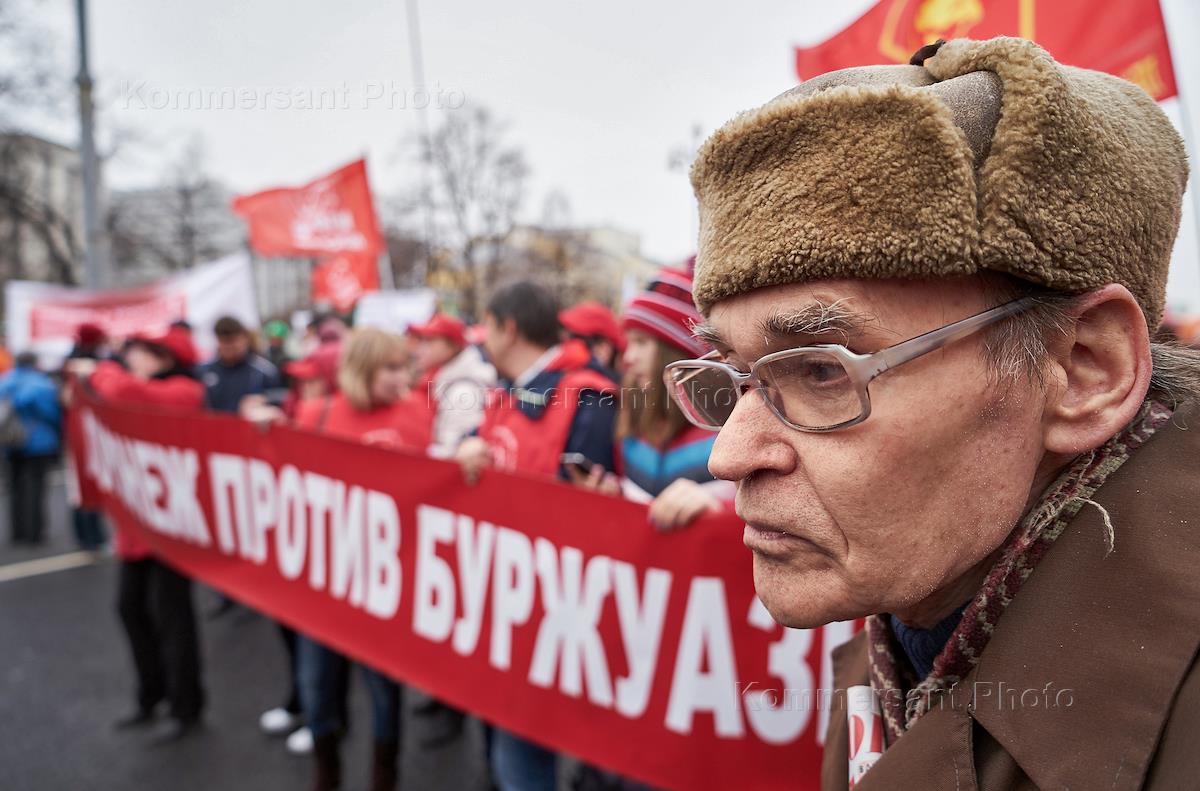Политика Митинг, организованный Центральным и Московским Комитетами Коммунистической партии России, против ухудшения социального положения граждан России прошел на Театральной площади вблизи памятника Карлу Марксу