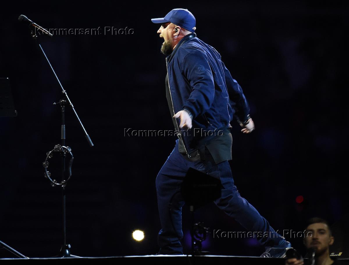 Рэп-исполнитель Баста (Василий Вакуленко) во время выступления в спортивном комплексе "Олимпийский".