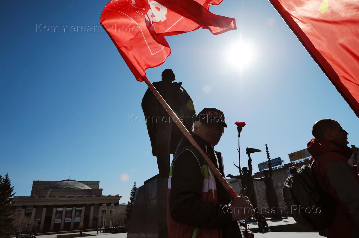 Возложение цветов к памятнику Владимира Ленина активистами Коммунистической партии России (КПРФ) в…