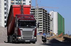 Жанровая фотография. Водитель у самосвала на строительной площадки жилого комплекса.