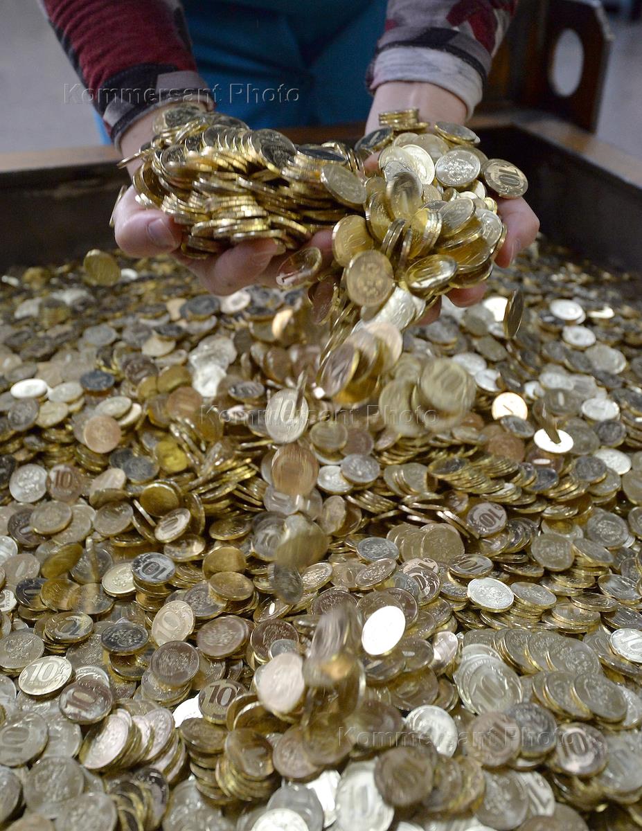 Московский монетный двор. Контейнеры с десятирублевыми монетами
