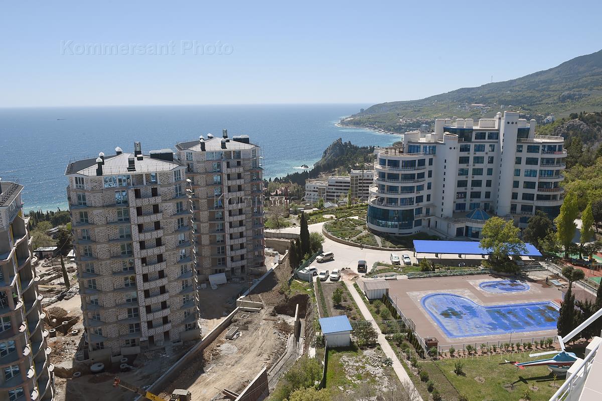 Виды Ялты. Строительная площадка новых домов на побережье Черного моря.