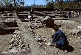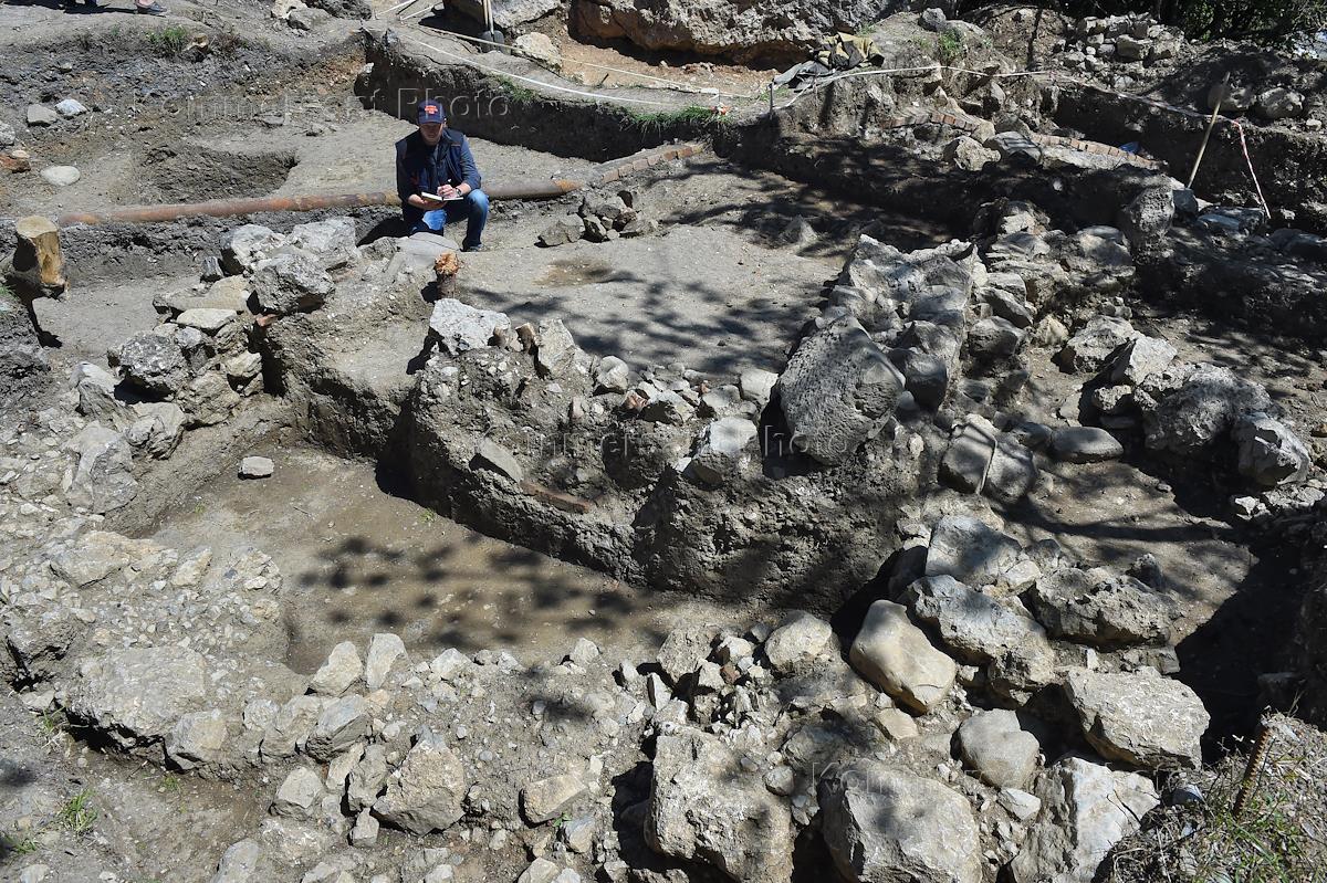 Фундамент древней христианской базилики в ходе раскопок на территории Международного детского центра…