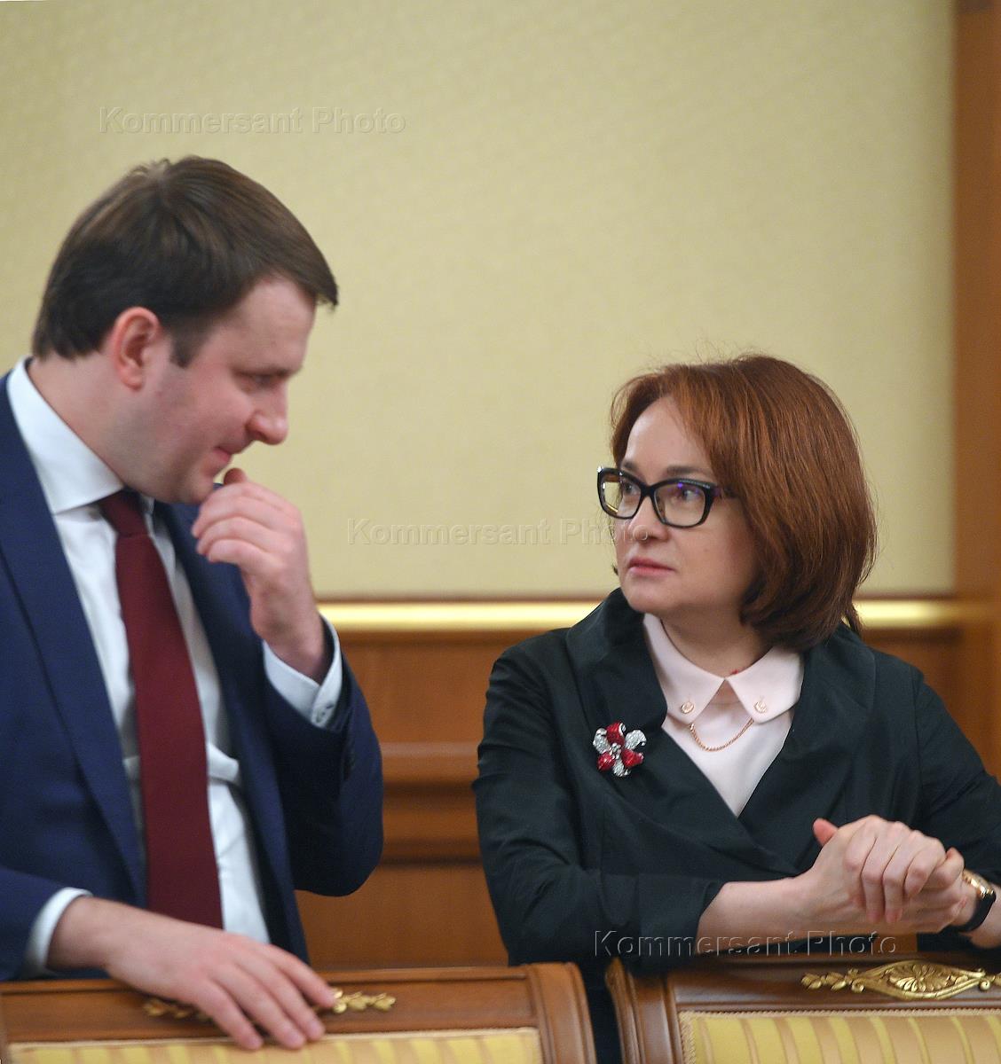 Заседание правительства России. Председатель Центрального Банка России Эльвира Набиуллина (справа) и…