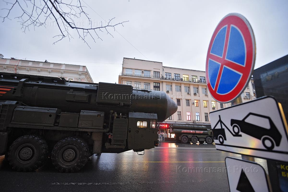 Ночная репетиция Парада Победы на Красной площади. Проход техники по Тверской улице.