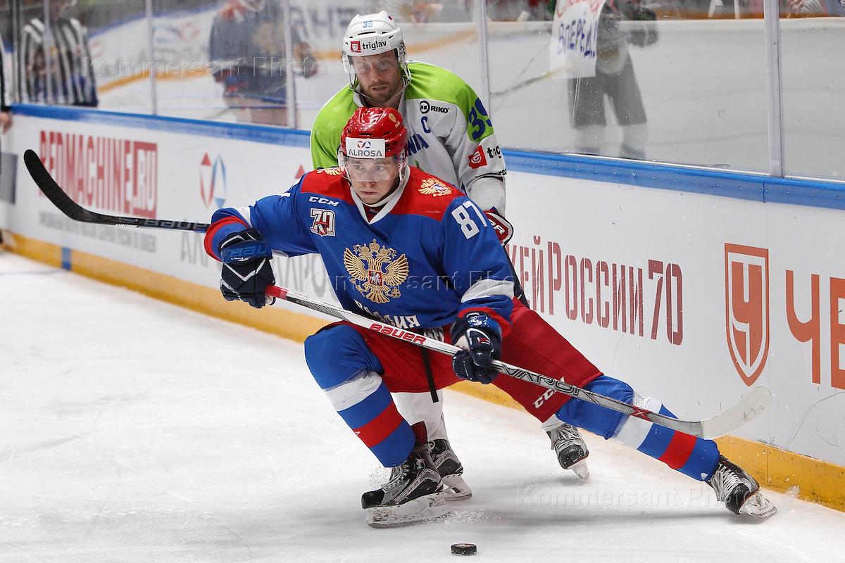 Кубок АЛРОСА. Матч между сборными командами России и Словении. Слева направо: игроки сборной команды…