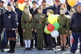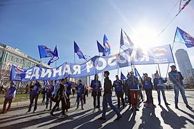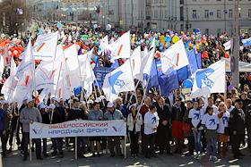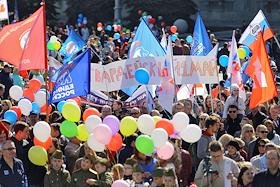 Участники Первомайской демонстрации представителей разных партий и движений на Проспекте Ленина.