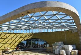 Cтроительная площадка парка "Зарядье". Рабочие во время установки ландшафтной сетки.