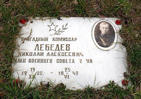 Памятная доска на могиле бригадного комиссара Николая Лебедева.