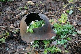 Бойцы поискового отряда во время поисков останков солдат Великой отечественной войны. Каска,…