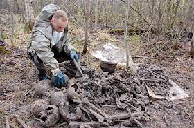 Бойцы поискового отряда ищут останки солдат Великой отечественной войны.