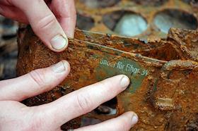 Бойцы поискового отряда ищут останки солдат Великой отечественной войны. Каска, найденная во время…