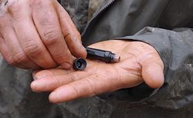 Бойцы поискового отряда во время поисков останков солдат Великой отечественной войны. Гильза,…