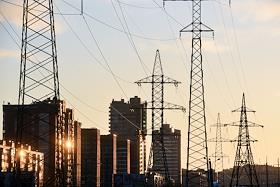 Виды Санкт-Петербурга. Линии электропередач на фоне жилых домов.