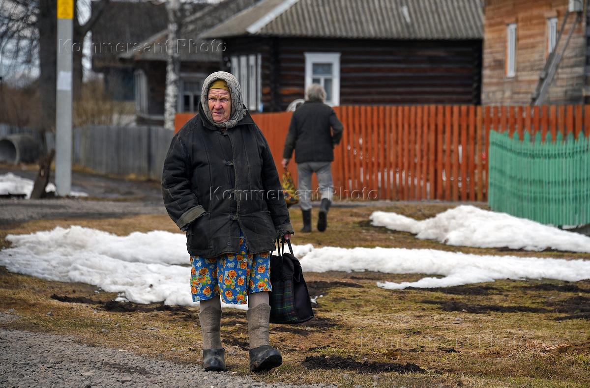 Виды деревни Слобода Сокольского района Вологодской области. Местные жители покупают продукты в…