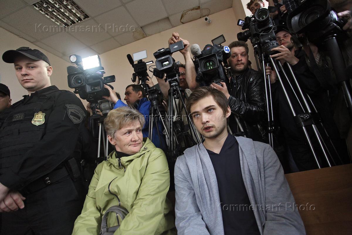 Блогер Руслан Соколовский (справа) и его мать Елена Чингина (вторая справа) во время оглашения…