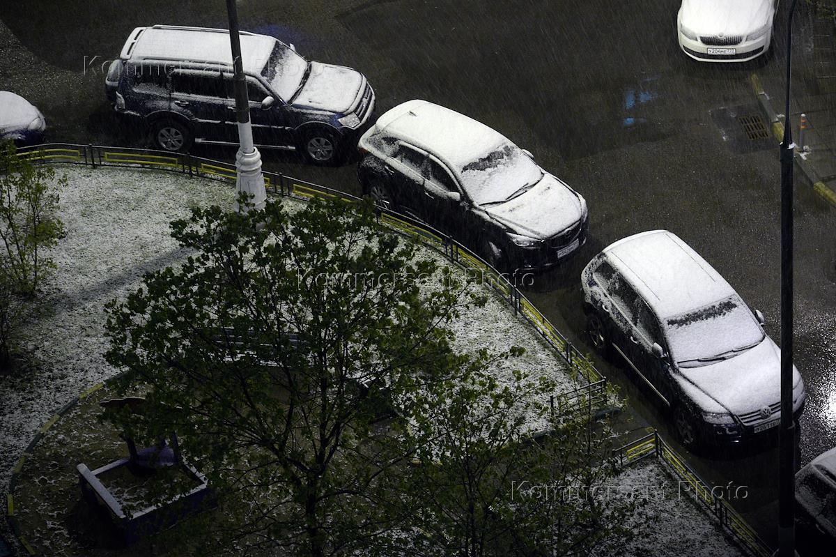 Жанровая фотография. Снегопад в Москве. Заснеженные автомобили на парковке.
