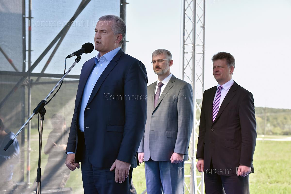 Официальный старт строительству федеральной трассы "Таврида". Слева направо: глава Республики Крым…