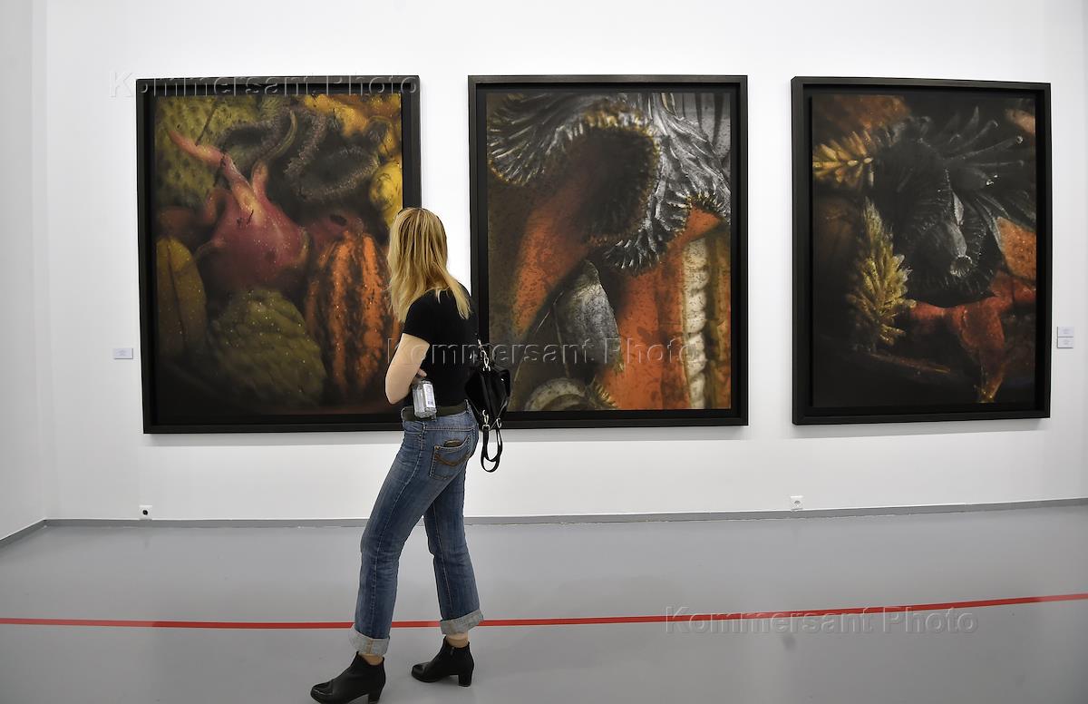 Посетительница на выставке художника Сары Мун "Смена состояний" в Мультимедиа Арт Музее (МАММ).