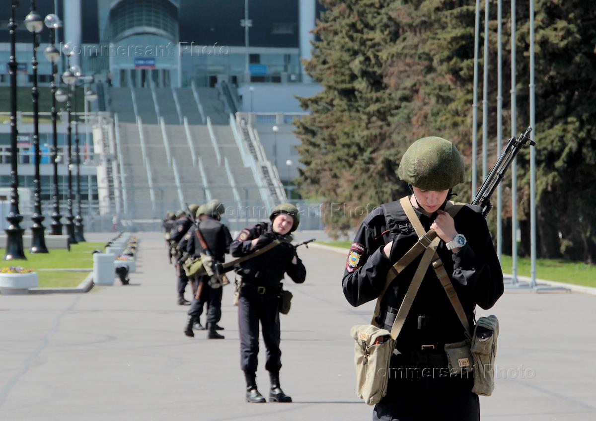 Полицейские учения по обеспечению безопасности у стадиона на Крестовском в рамках подготовки в Кубку конфедерации.