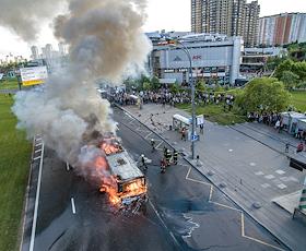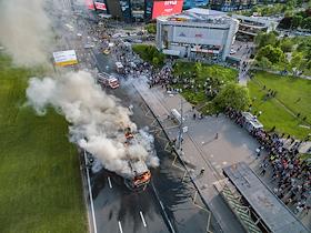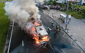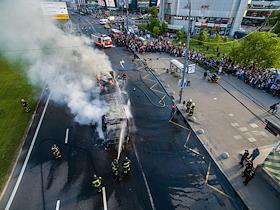 Рейсовый автобус, загоревшийся на проспекте Вернадского в Москве.