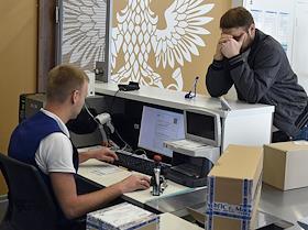 Жанровая фотография. Почта России. Работа Отделение почтовой связи 119285 на Мосфильмовской улице.