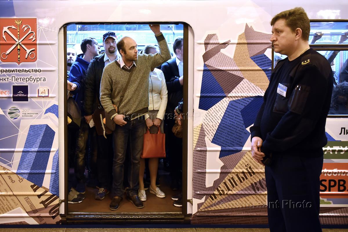 Жанровая фотография. Пассажиры в вагоне метро в ожидании отправления поезда.