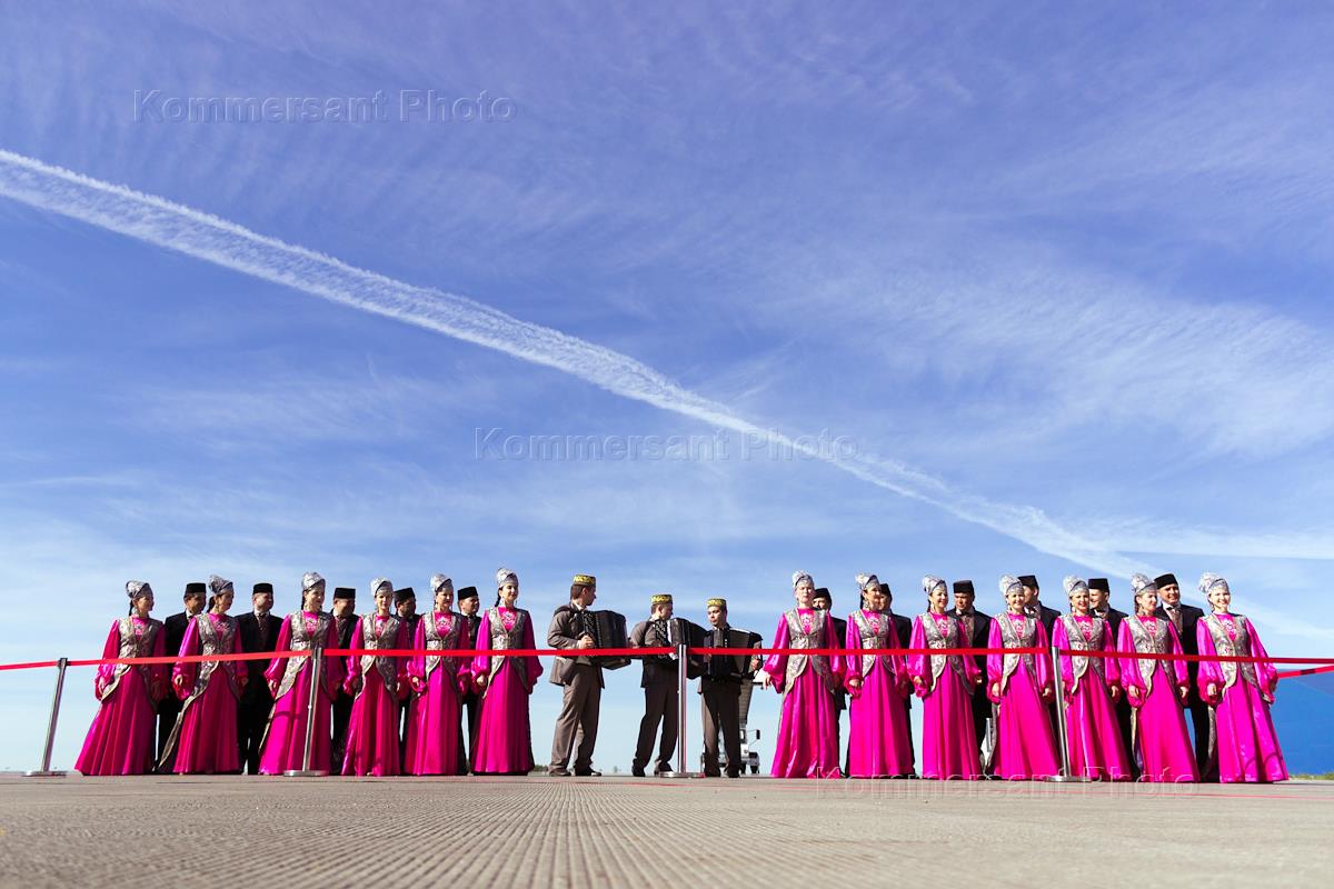 Международный аэропорт "Казань". Самолет первого рейсо "Пекин - Казань" авиакомпании ВИМ-Авиа. На…
