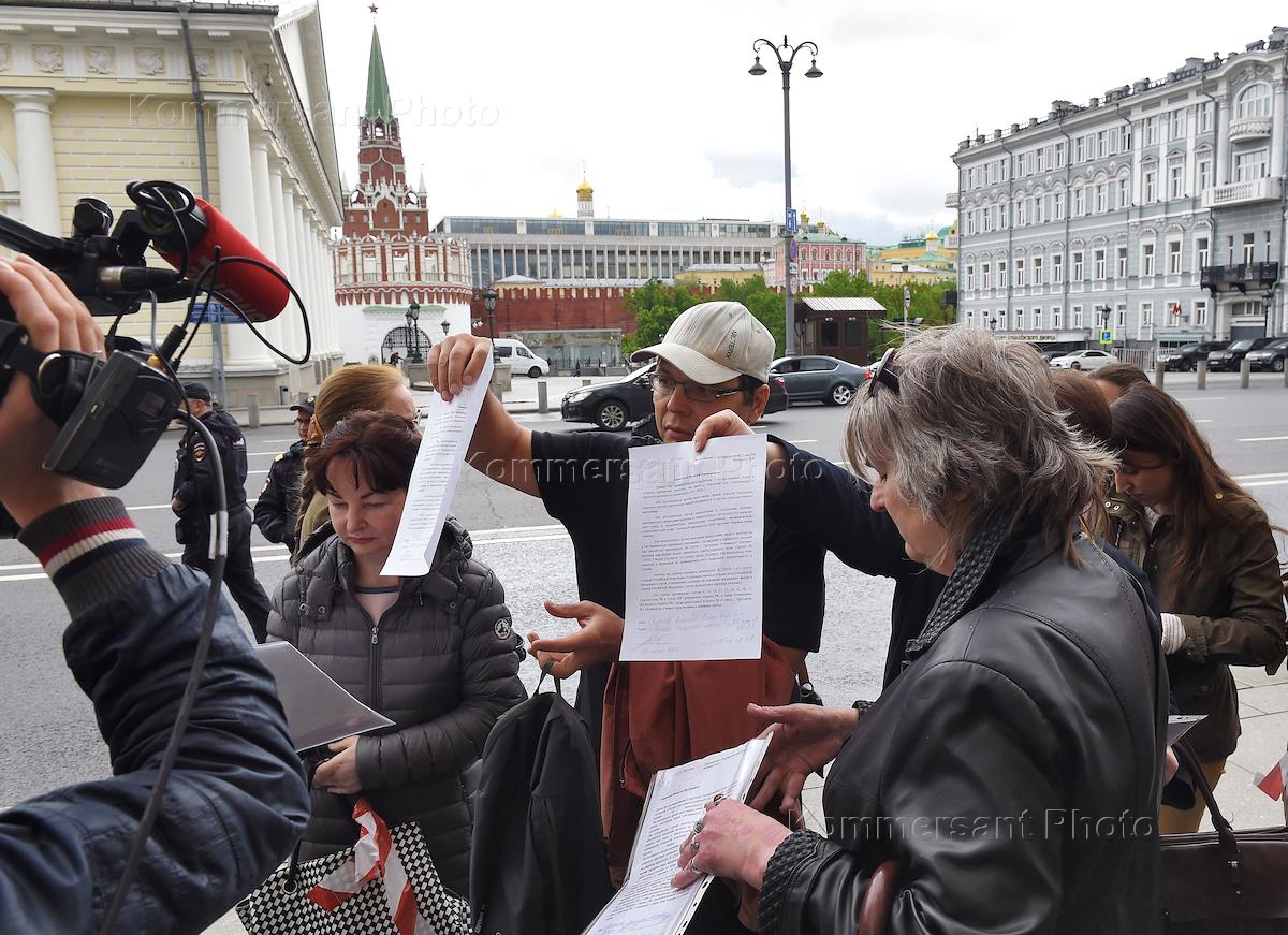 Сбор и передача подписей в приемную Государственной Думы против законопроекта о "реновации" на имя председателя Думы Вячеслава Володина.