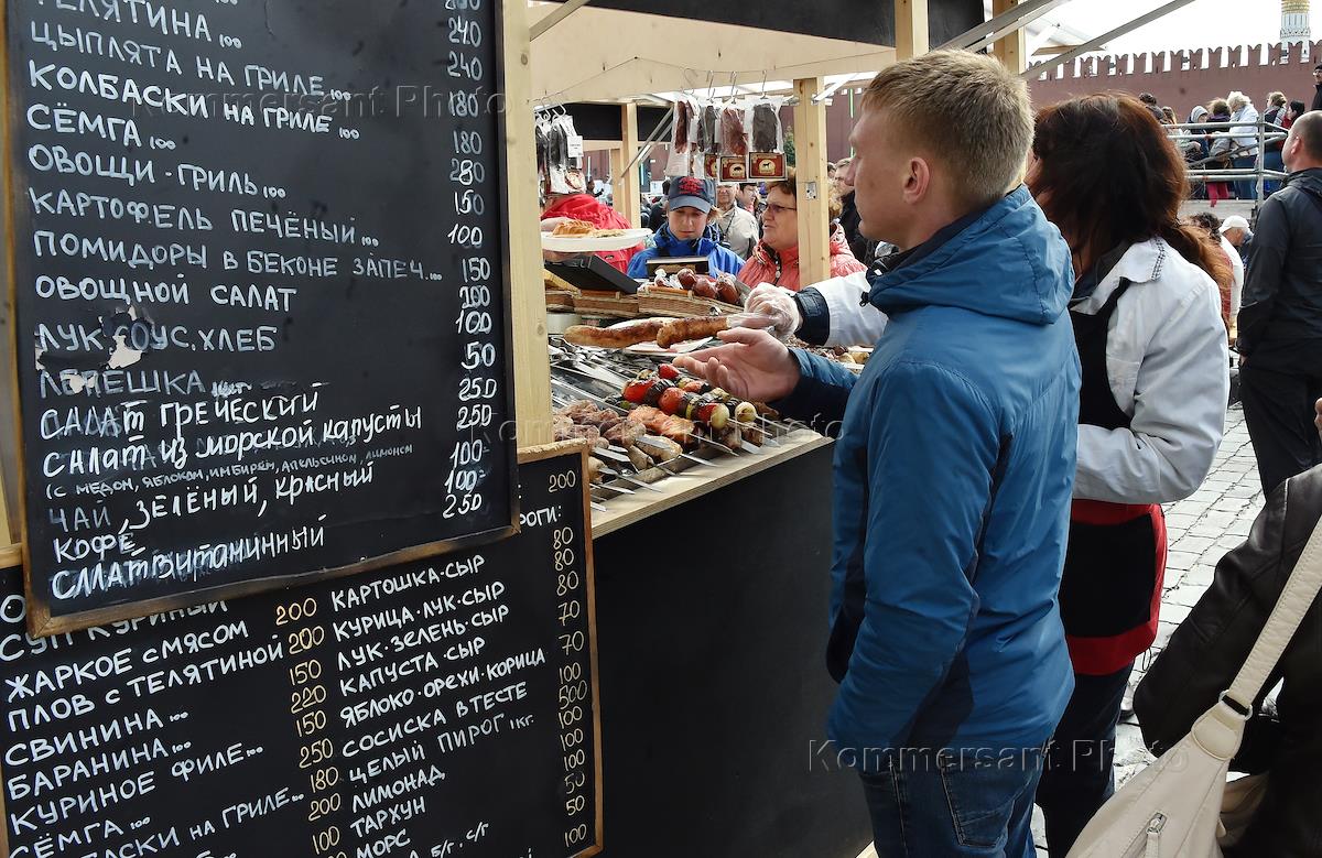 III Книжный фестиваль "Красная площадь". Посетители у киоска с едой.
