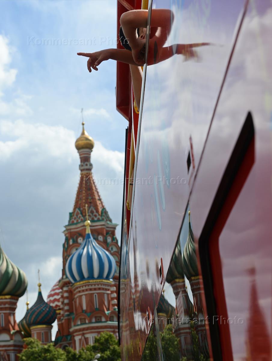 Виды Москвы. Туристический автобус у собора Покрова Пресвятой Богородицы, что на Рву (Покровский…