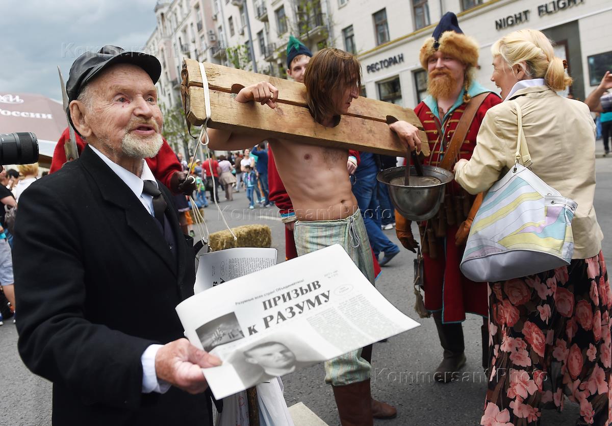 Празднование Дня России. Участник театрализованной постановки "Мобилизация", посвященной началу…