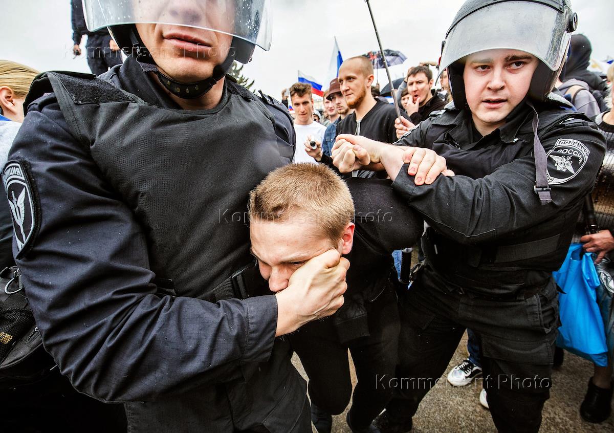 Празднование Дня России. Митинг против коррупции на Марсовом поле. Сотрудники полиции во время…
